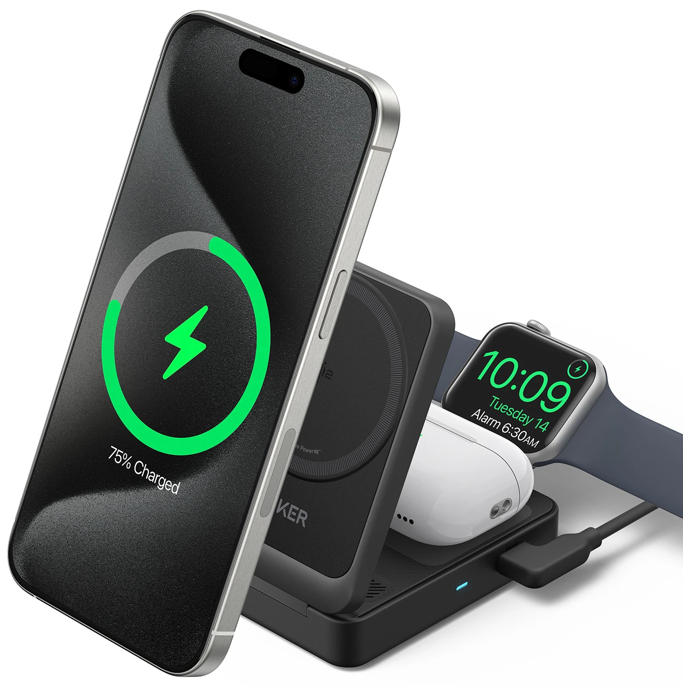 Anker MagGo Wireless Charging Station 3-in-1 Foldable Pad Schwarz